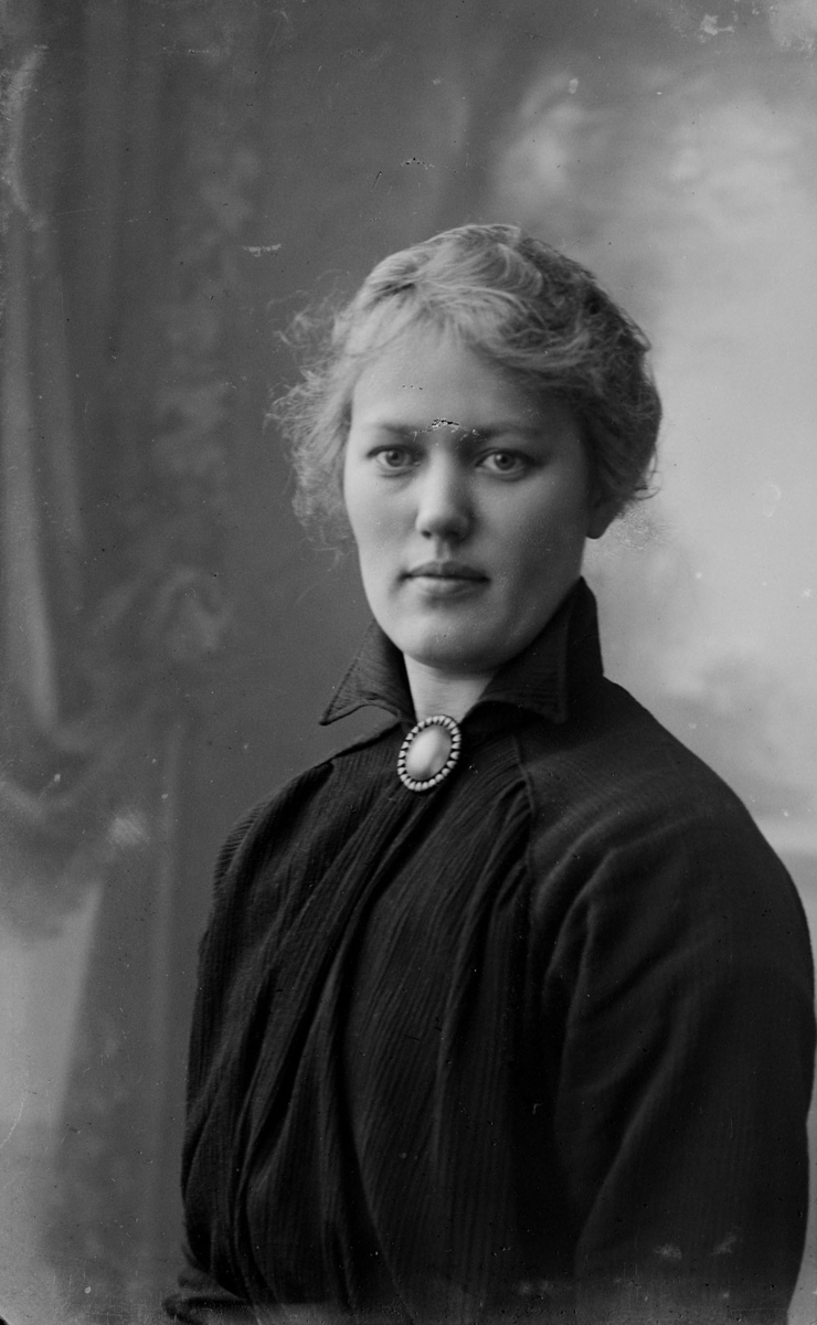 Kvinna ”1916 F” på asken, repor i pannan, metallutfällning.
