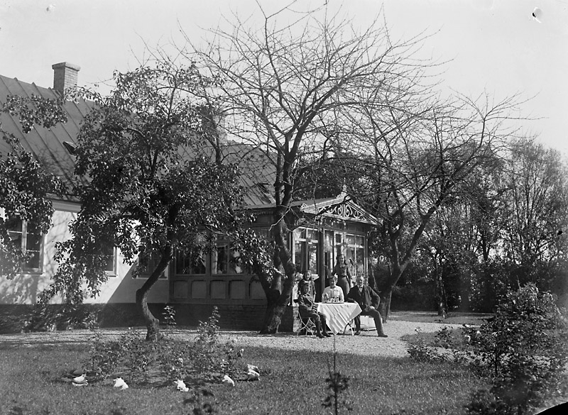 En familj i en trädgård