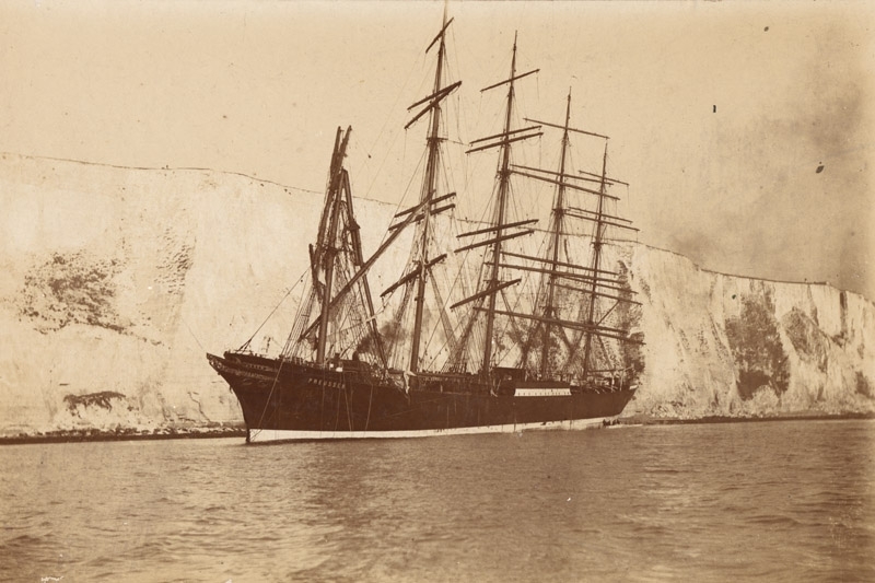 Segelfartyg Preussen, Dovers klippor i bakgrunden, foto av G T Amos fine art gallery Snargate 8 Dover.