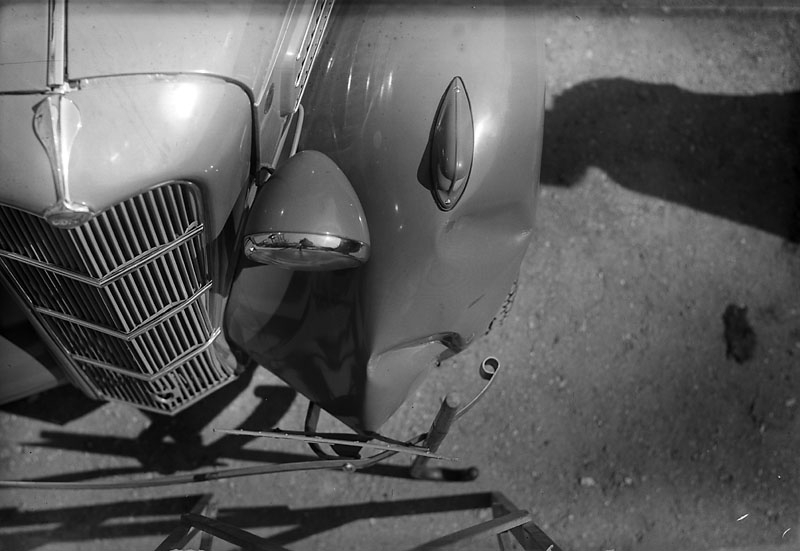Frampartiet av krockad Ford ”kolliderad bil” registreringsnummer M17190.