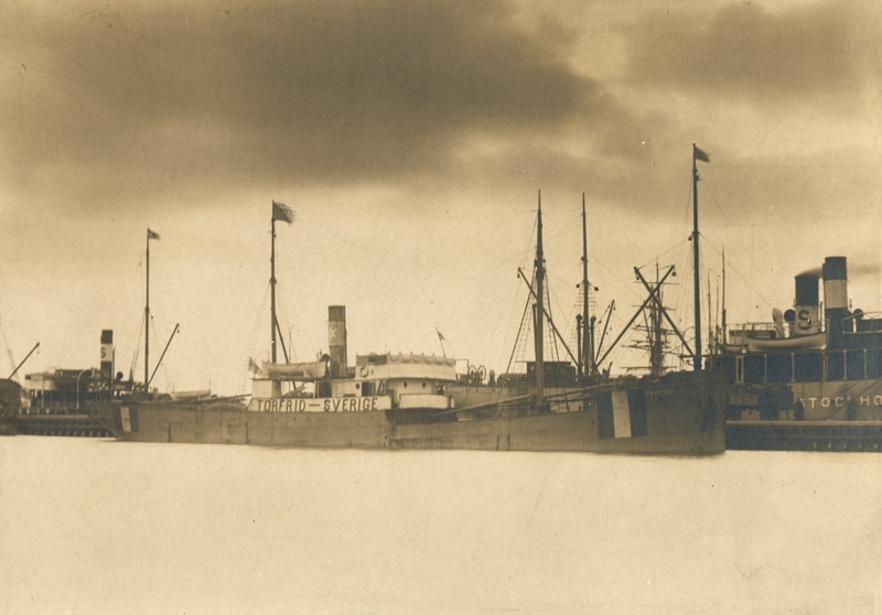 Fartyg S/S Torfrid, fartyget Stockholm till höger, foto Johnson Trelleborg.
