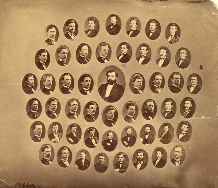 J W Wulffs skolklass 1875 eller 76 i Trelleborg, i mitten kamrer Wulff själv, 12824.