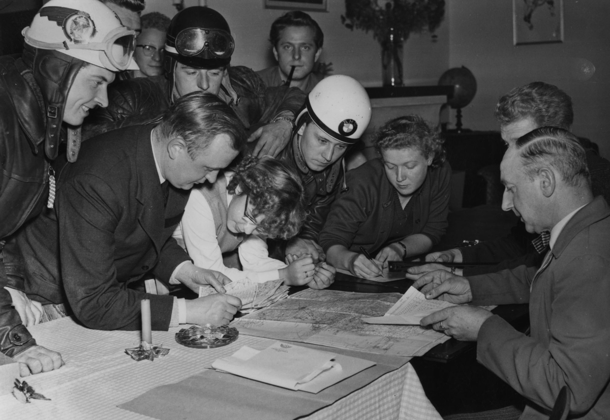 Böjd över bordet från vänster Calle Johansson ledare för Träffpunkten, Cederholm Foto Östergatan 13 Trelleborg 0410/11421.