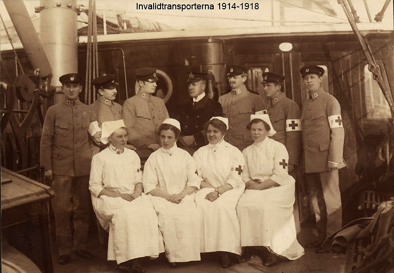Röda korspersonal invalidtransporterna 1914-18, gruppfoto på båtsdäck, 3888.