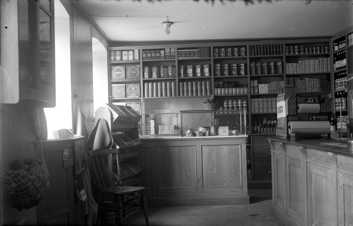 Gatubilder. Herman Perssons affär, speceriaffär, Östergatan 2.