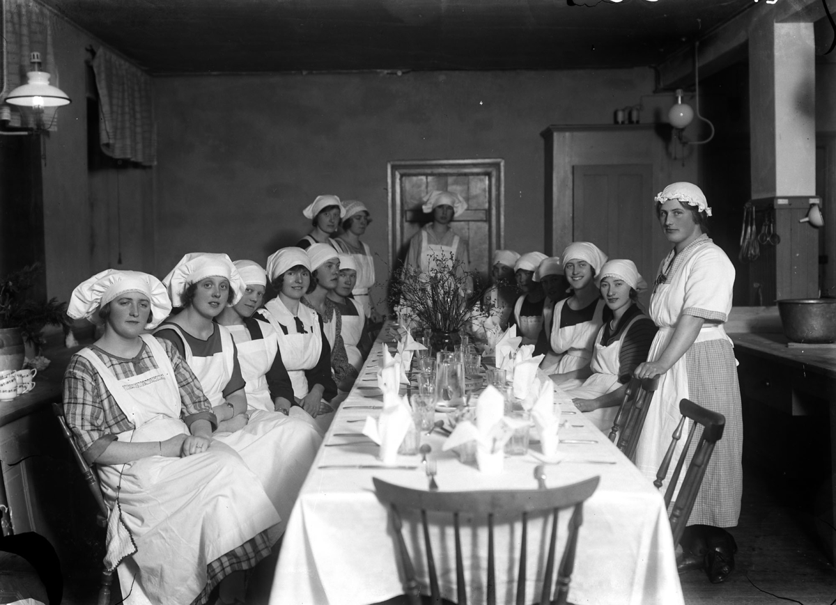 Skolköksskola. 14 elever på en avslutningsfest med sin lärare.