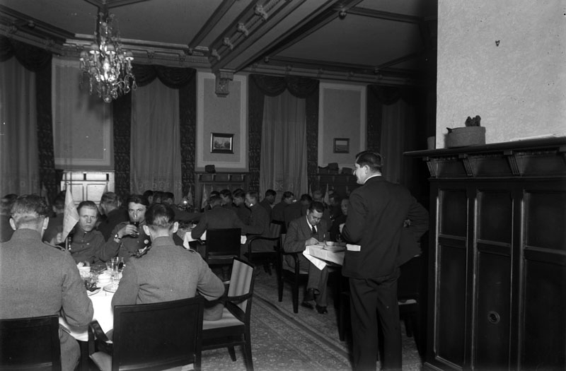 Ätande soldater i elegant rum restaurang ? Stadt ? Saarbataljonen.