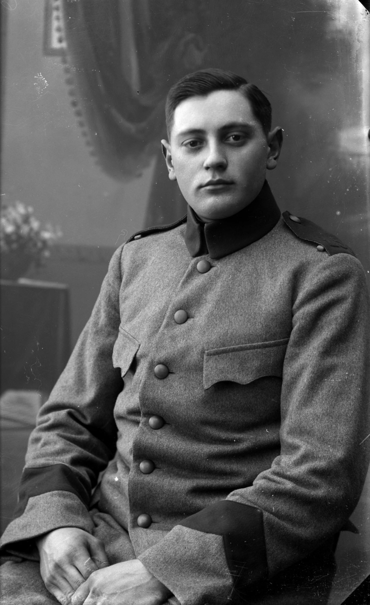 Ateljébild, man (soldat) 1915 ”A” metallutfällning.