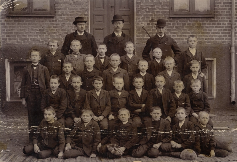 Lärare och elever vid Trelleborgs allmänna läroverk höstterminen 1896. Överst från vänster: Rad 1. 1. Rektor N Asher, 2. August Hannsson och 3. E. Pfannenstill. Rad 2. 1. Kilian Jönsson, 2. Lars B. Larsson (fågelvikare), 3. Gustaf Nordberg, 4. Gottfrid Möller, 5. Daniel Hilding Sjösten ( Dalköpinge). Rad 3. 1. Anselm Jönsson, 2. Hugo Stickler, 3.Torsten Pettersson (hamnkaptensson), 4. Kjell Hallonsten, 5. Bernhard Persson, 6. Alfred Andersson, 7. Harald Sjövall. Rad 4. 1. Gustaf Olsson ( bagareson), 2. Nils Sjöblom, 3. Agne Bokander, 4. Rudolf Hansson, 5.Gustaf Mörk, 6. Enok Wadstein, 7. Gösta Kock, 8. Gustaf Olsson (Skanör). Rad 5. 1. Daniel Götherström, 2. Verner Andersson (garvare Anderssons son), 3. Einar Jönsson (slaktareson), 4. Andreas Andersson, 5. Joel Borgström, 6. Henrik Mörk. Övriga nummer: 62,5 & 14.