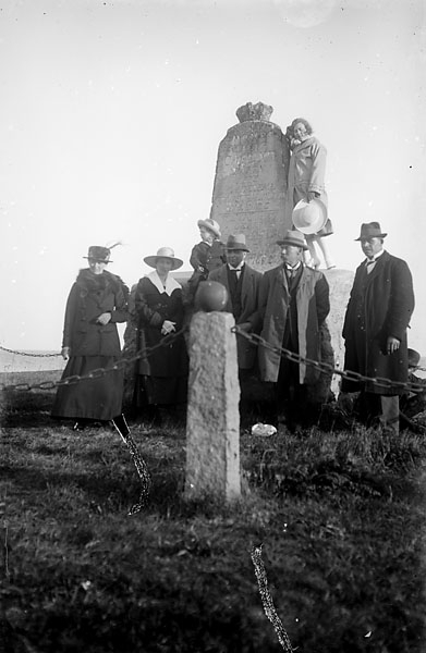 Herr och fru Johnson med son + andra damer och herrar vid Stavstensmonumentet. Johnsons privata bilder.