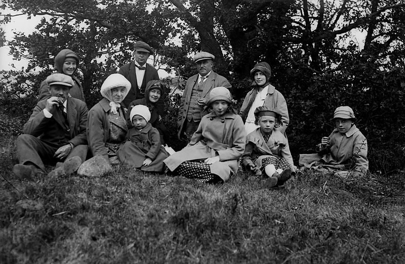 Titel: Utflykt grupp i gröngräset. Johnsons privata bilder Metallutfällning.