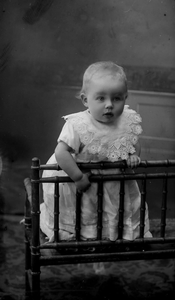 Ateljébild, barn ”Herr Johan Herrlin”, missfärgad, brun.