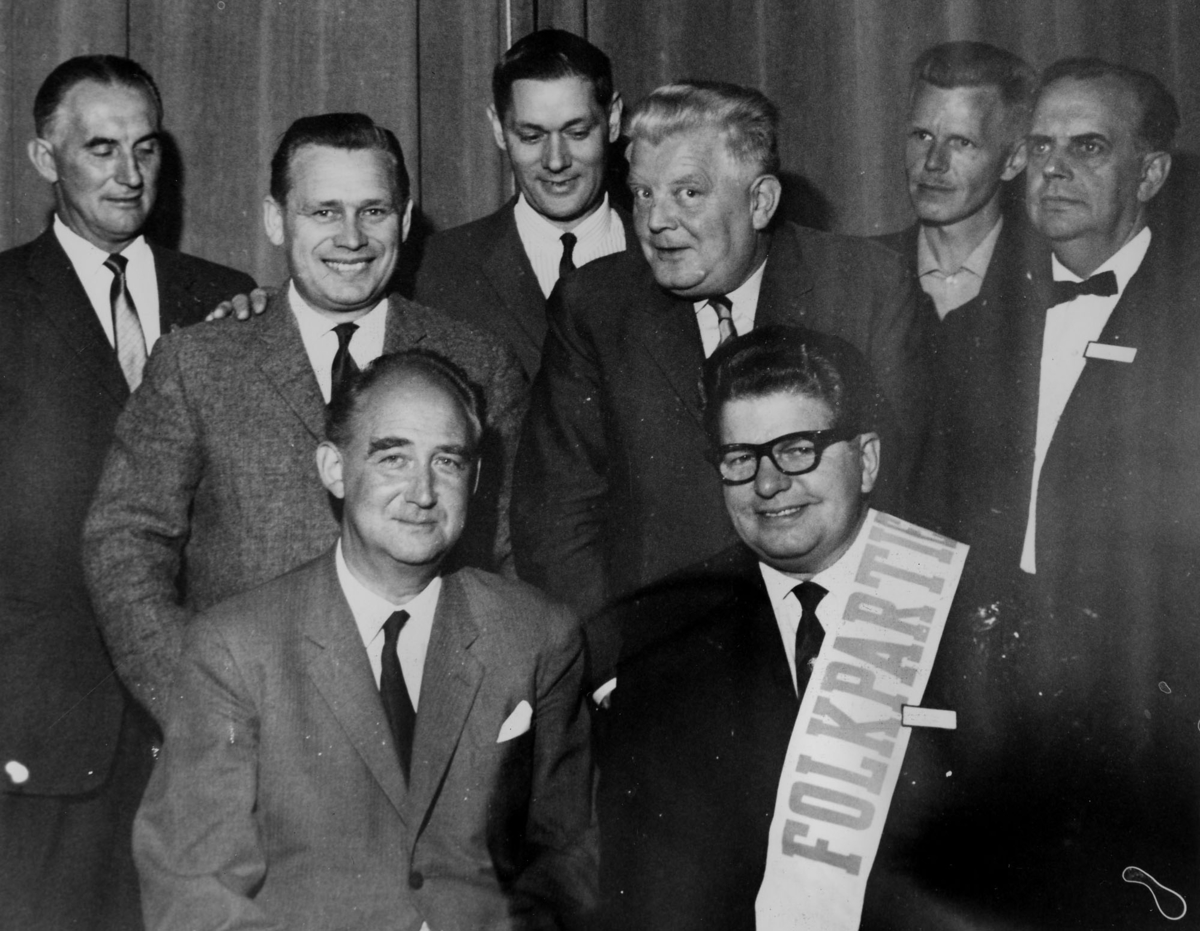 Folkpartidelegationen på Växjökonferensen, sittande från vänster Sven Wedén folkpartiledare efter Ohlin.