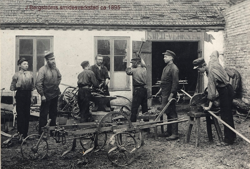 Johan Borgströms smidesverkstad Norregatan cirka 1895, 1 John Borgström sedermera kassaskåpsfabrikör död 1938, 2 Johan Borgström.