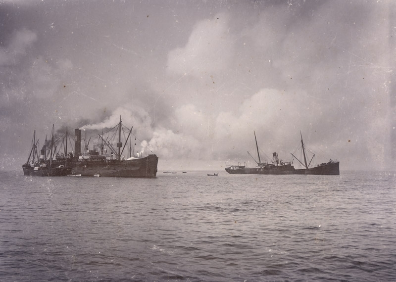 Titel: Fartygen Royalist och Belos och ytterliggare ett fartyg, foto:L H Borgström Trelleborg Klagstorp.