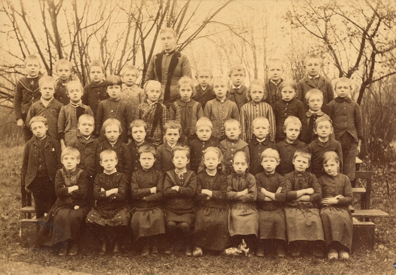 Titel: Lärarinnan Tekla Nordbergs skolklass, foto: Rudolf Pettersson Höganäs.