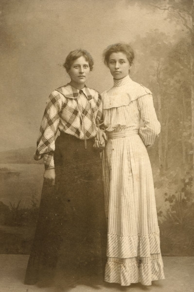 Ateljébild, från vänster Karin Olsson Öster, Gerda Andersson dotter till Per Persson Östra Torp, maka till Gustaf Andersson Ö. Förstadsgatan (hon hade spettkaksbageri), 14686E foto: B P Bengtsson.