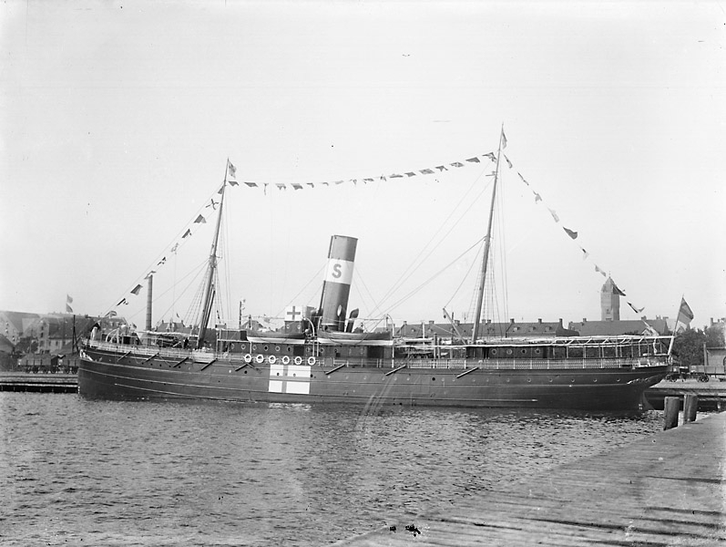 Första världskriget? Invalidbåt i Trelleborgs hamn. Aeolus?