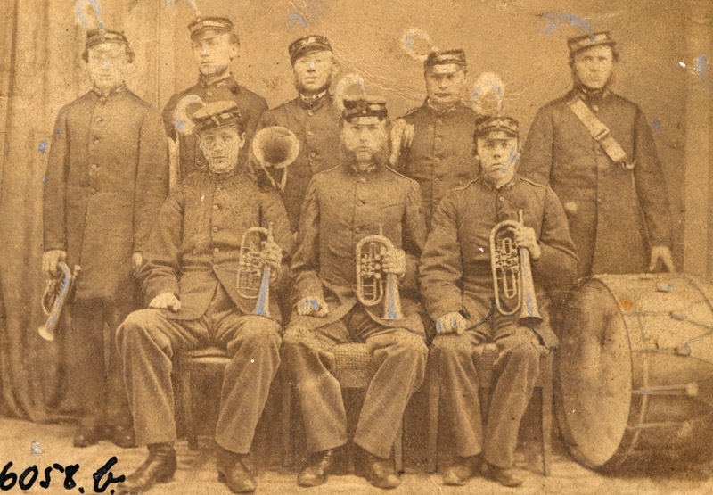 Gruppfoto militärorkester med instrument, 6058b,fotograf: P F Bjelke Trelleborg, gåva av fröken Anna Nil????