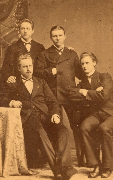 Gruppfoto ateljé, stående Christoffer Pettersson, Severin Ekman, sittande Anders Pettersson, Anders Ohlsson-Lindhfoto: Carl de Sharengrad östergatan 39 Malmö, bilden tagen innan 1878 efter 1872.