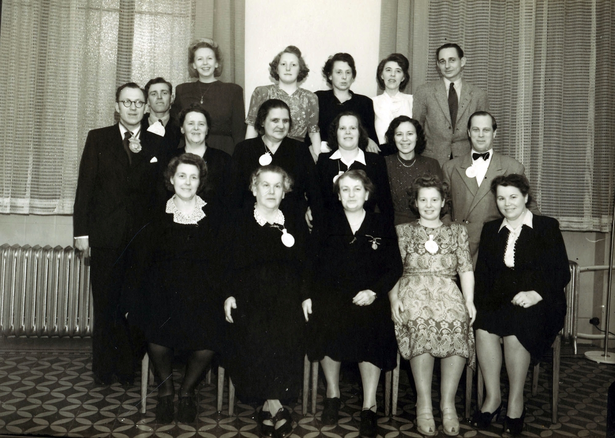 Restaurant Lyktans personal 1940-tal, mellanraden längst till höger den legendariske kyparen Nikander ”Nicke”.