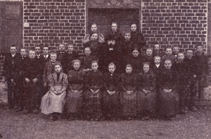 Konfirmandgrupp 1896, överst från vänster Fru Hilda Blom född Mårtensson, Alma Nordenberg, Ella Feuk dotter till kyrkoherde G A Feuk i Västra Ingelstad Pastor A M Nordenberg (i mitten).