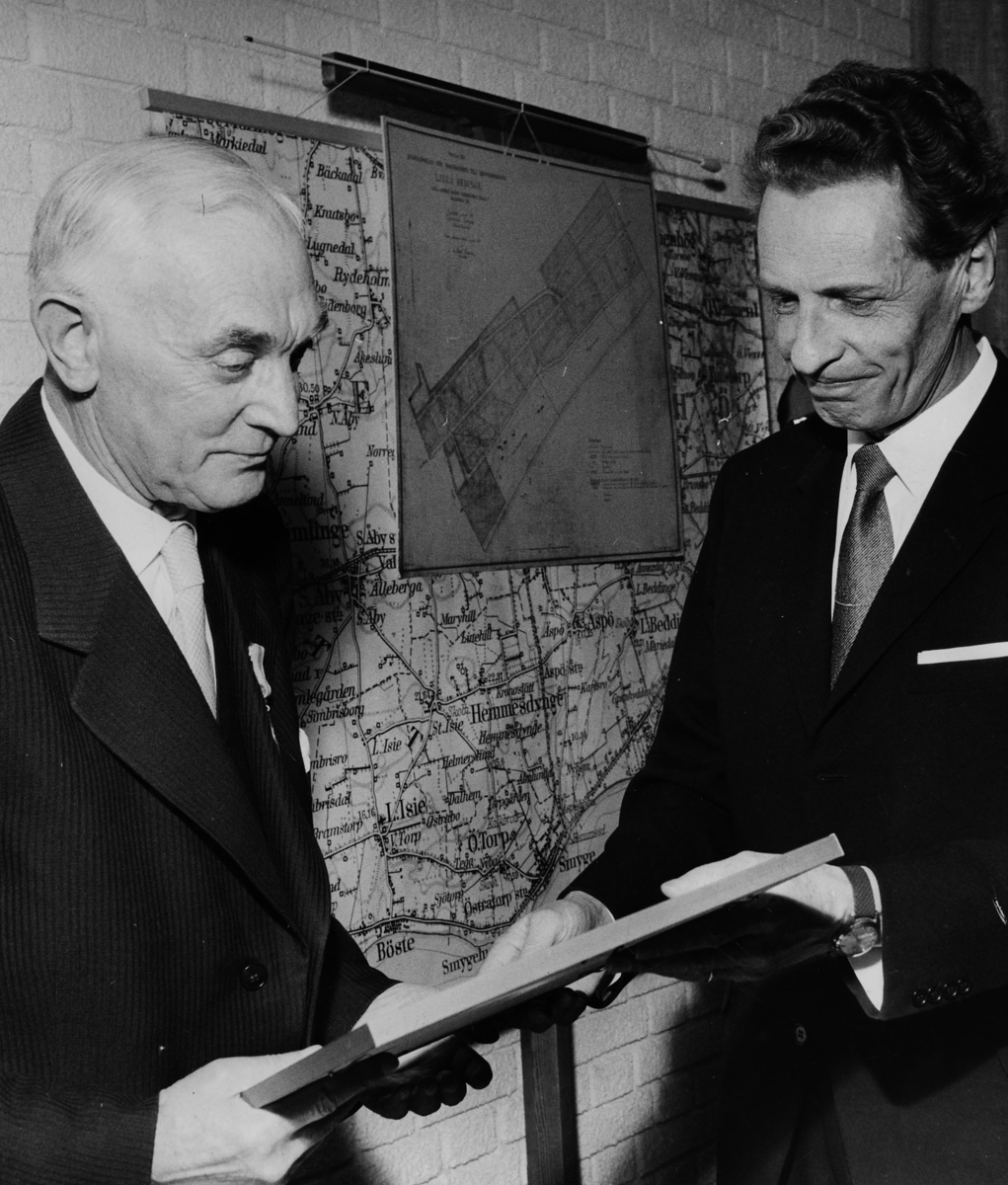 Till höger Gösta Netzen landshövding i Malmöhus län, 19.12.69? Cederholm Foto Helge Bengtsson Österg. 13 Trelleborg Tel.1421.