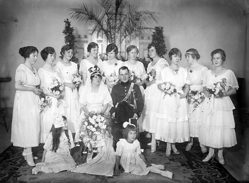 Brudpar med tärnor.