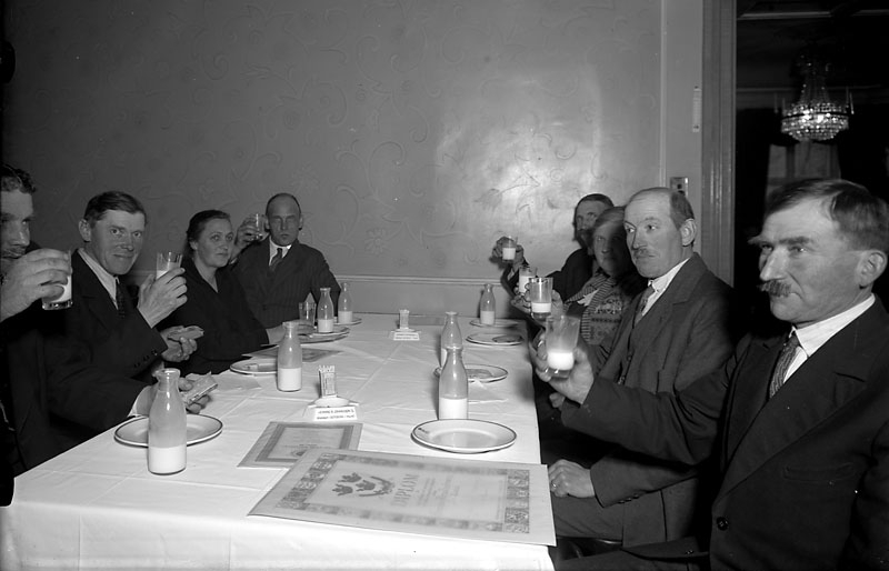Sällskap som sitter runt ett bord och dricker mjölk ”mjölkpropaganda”