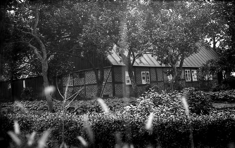 Hus med träd och häck framför. Johnsons privata bilder.