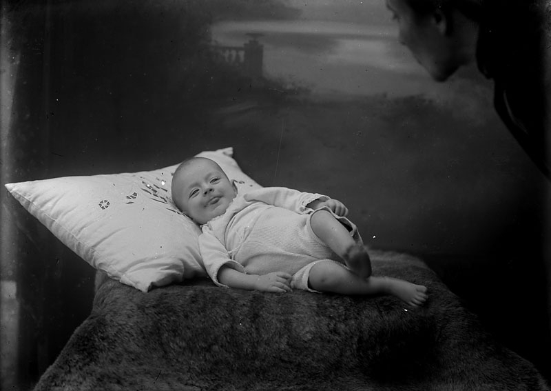 Ateljébild, spädbarn på en filt ett av fotograf Johnsons barn?