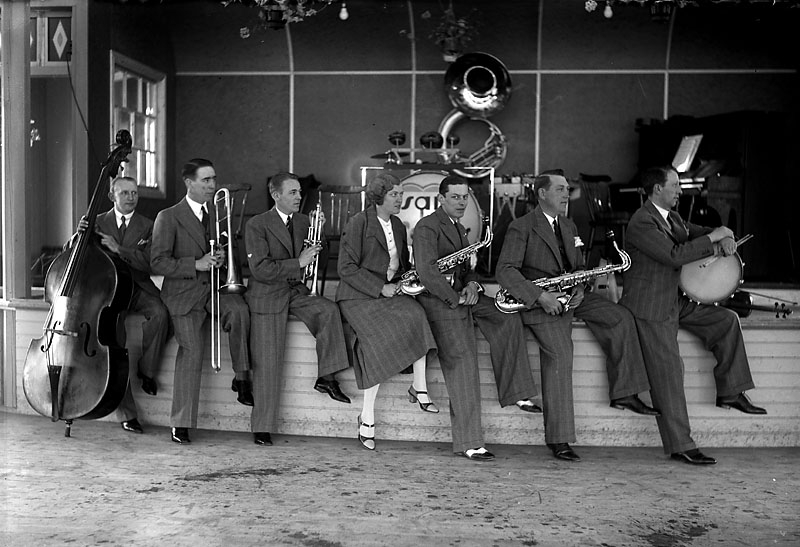 Musiker Folkets Park 7 sittande musiker Sam på bastrumman