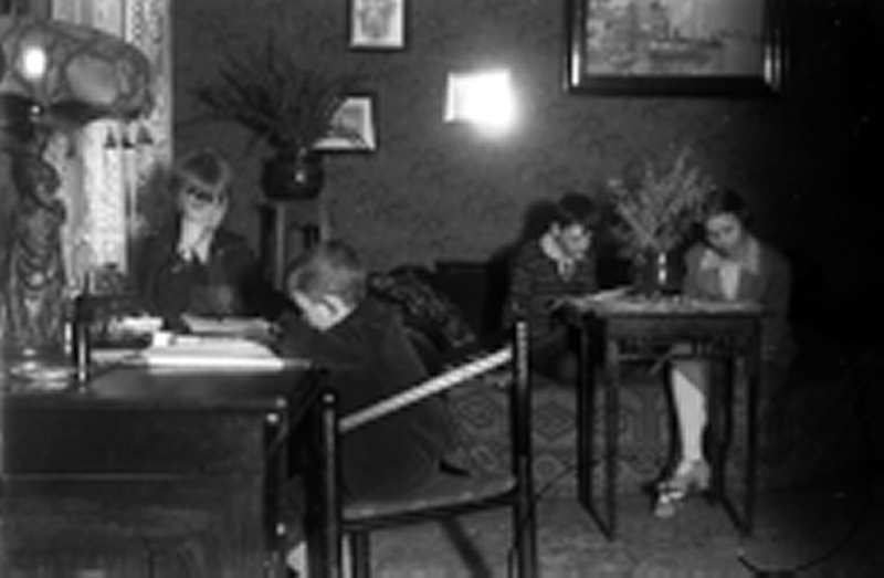 Titel: Johnssons hem, fru Johnsson och sönerna + en flicka, Johnssons privata bilder Emulsionsavlossning.