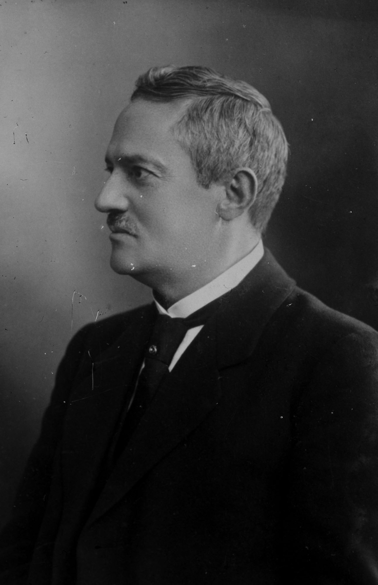 Titel: Repro, Ateljébild man Linder stadsbanken, 1935. Metallutfällning.