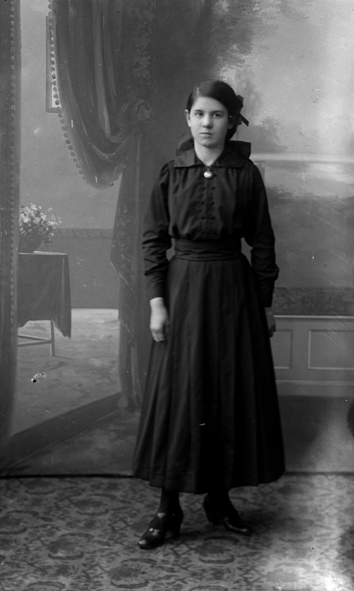 Ateljébild, kvinna, metallutfällning, dikoitist slöja.