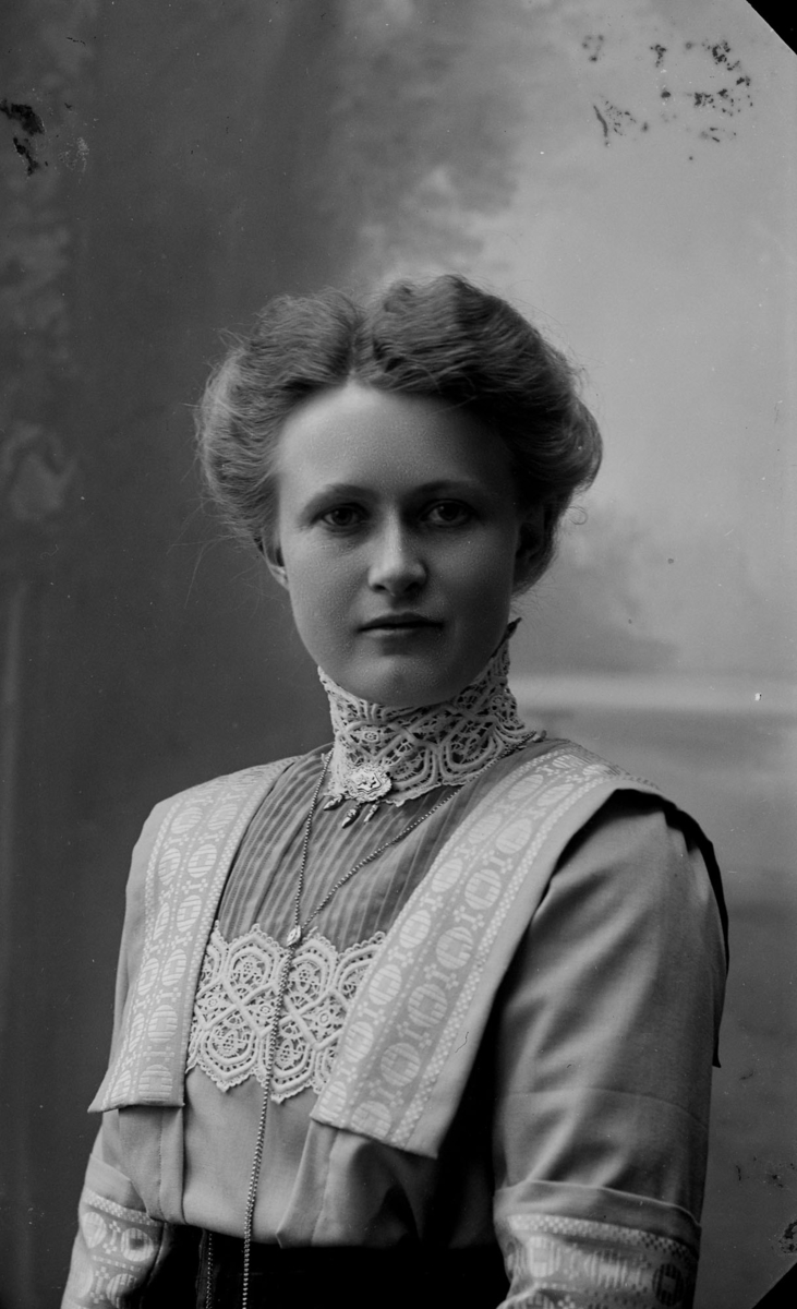 Ateljébild, kvinna ”Fr. Ida Persson”, missfärgad, brun.