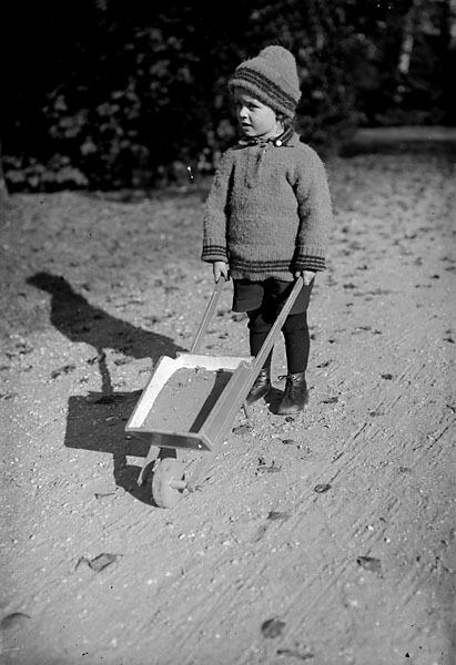 Liten pojke med liten skottkärra. Johnsons privata bilder