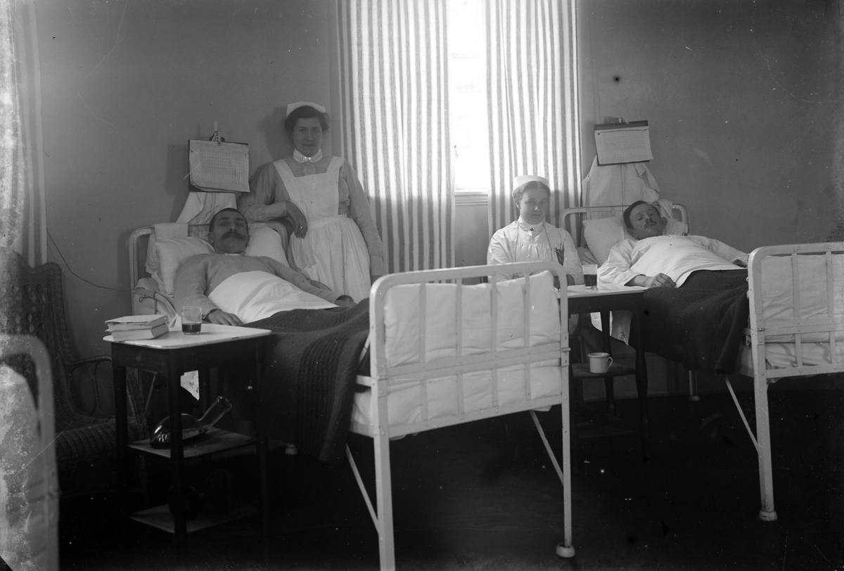 Två manlga pasienter med sina respektiva sjuksköterskor.