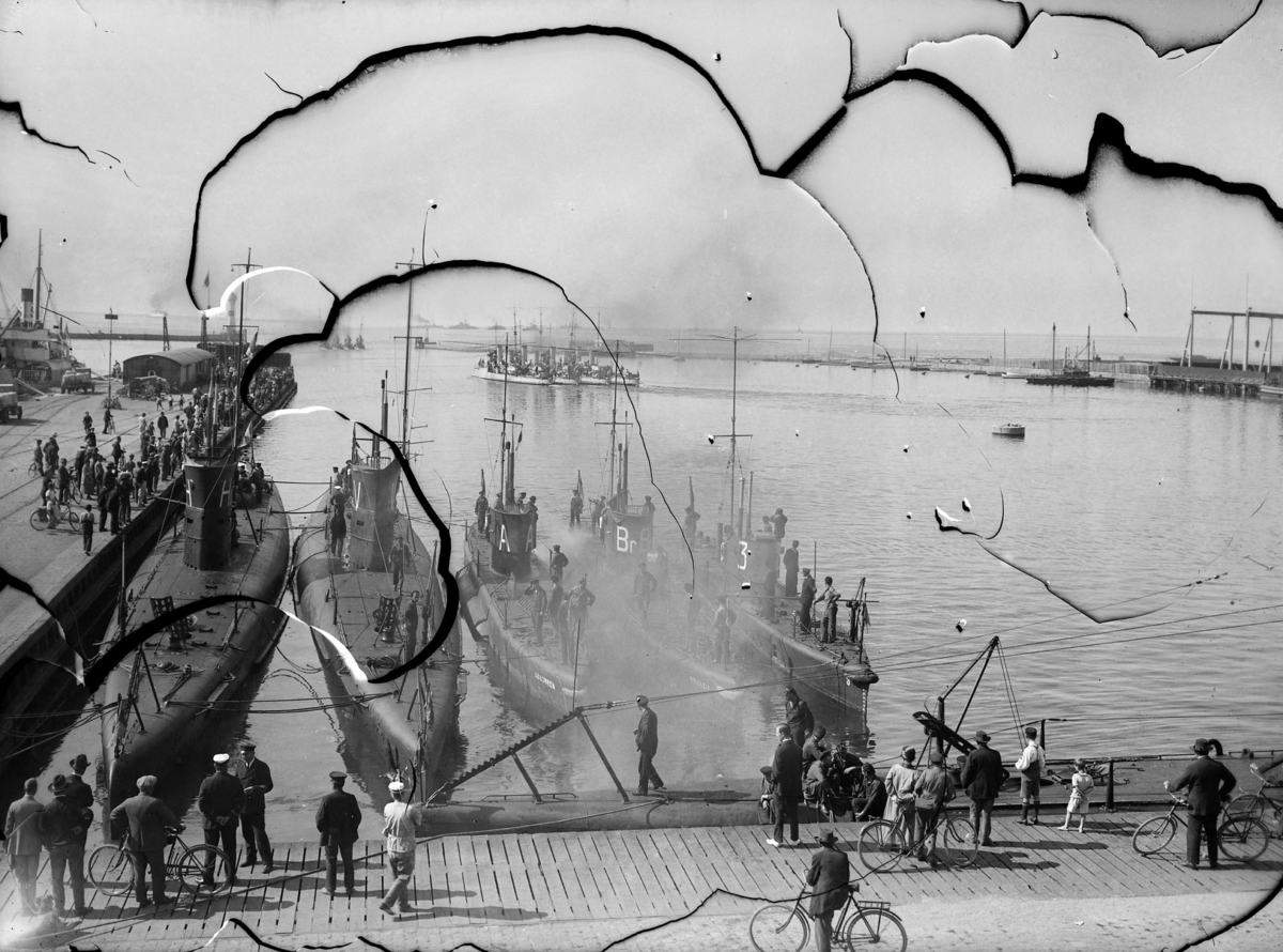 Hamnen. Eskadern i hamnen. 4 ubåtar.