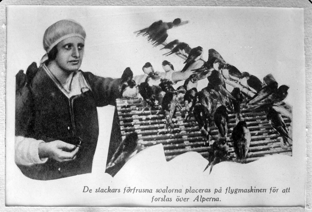 Svalor som forslas över Alperna ned en flygplan.