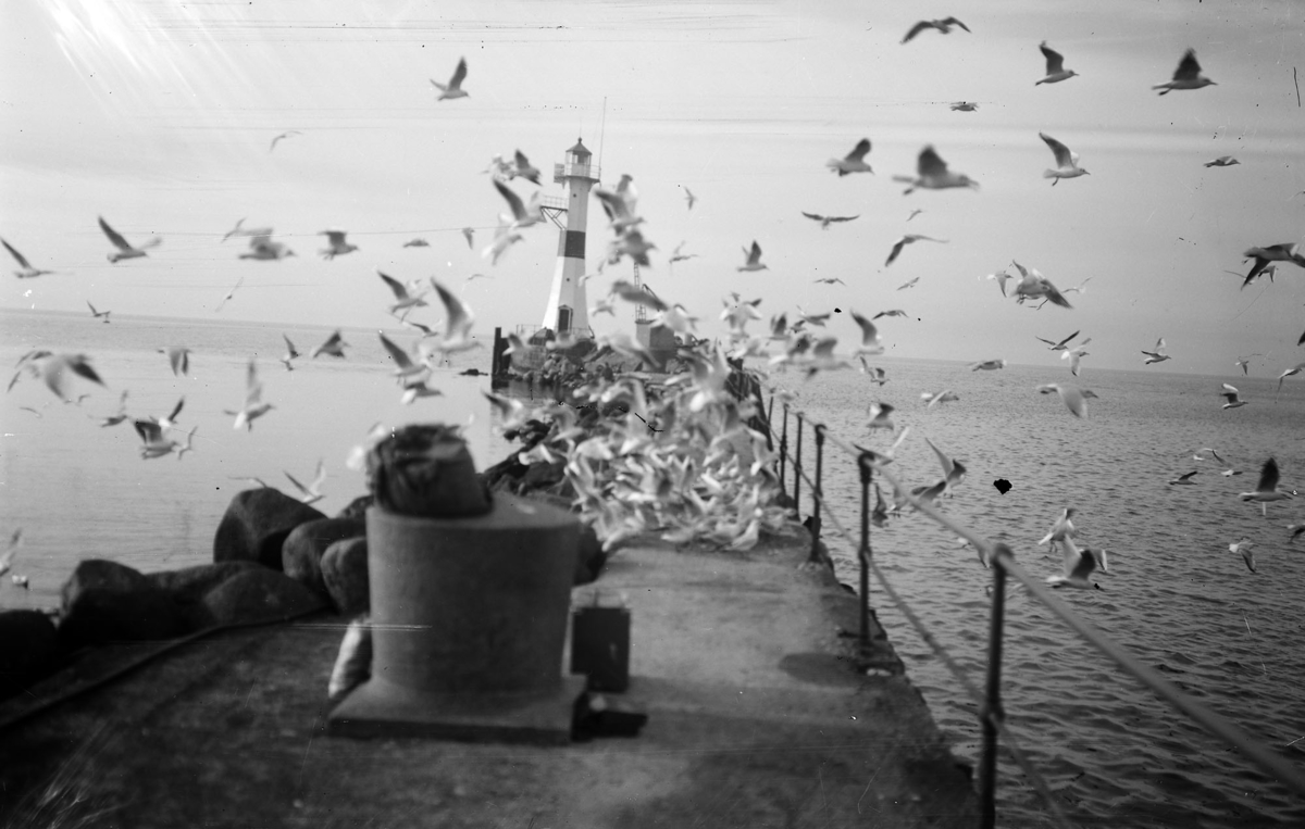 Fåglar vid piren.