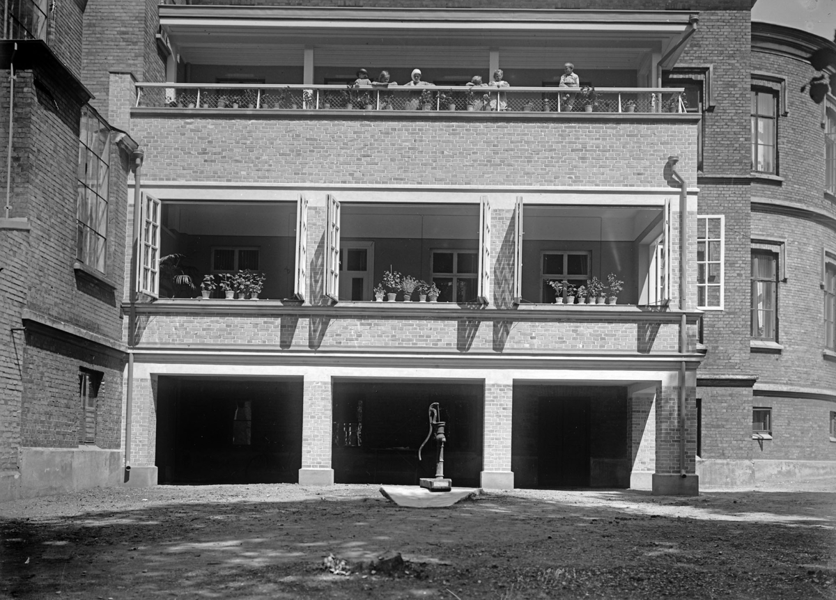 Gamla Lasarettet (Sjukhus). Exteriör, balkonger på baksidan. Kvarteret Skarpskytten, Östergatan.
