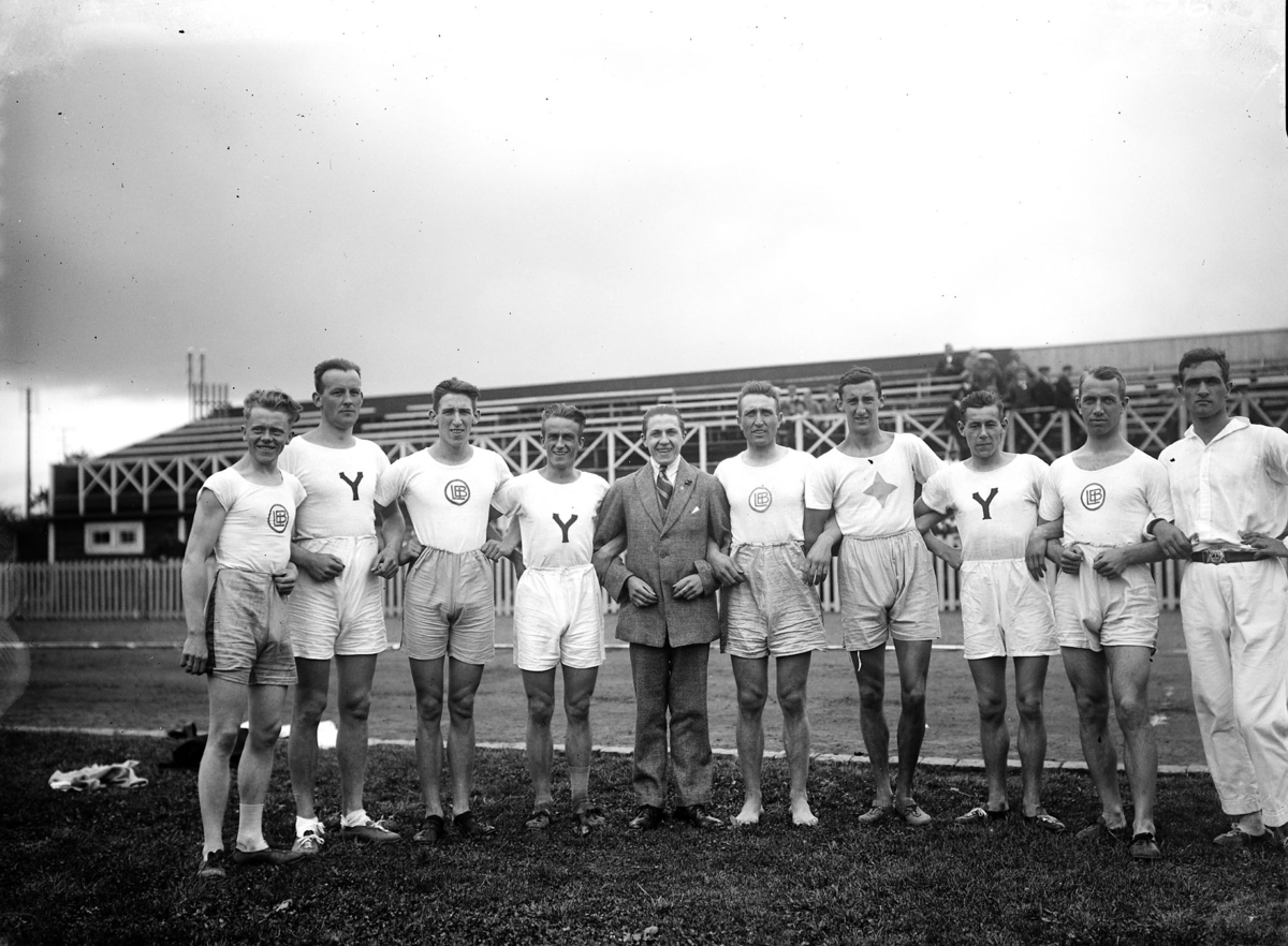 Idrottsmän (10). Samma personer som bilden DTB 537.