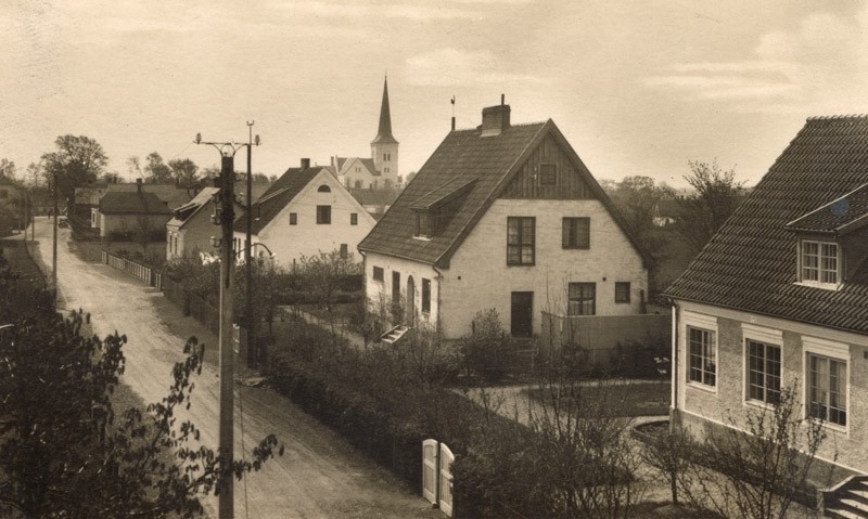 Sjukhusvägen i Anderslöv, kyrkan i bakgrunden.