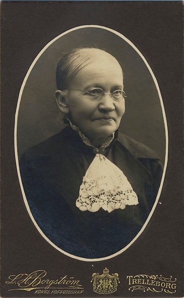 Titel: Jönsson Charlotte flickskolelärarinna, född 29/1 1848 död 5/8 1921 ogift. Fröken Charlotte Jönsson grundade Trelleborgs elementarskola för flickor, i början kallad privata flickskolan år 1872. Sedan en stadens samskola 1909 kommit till stånd i Trelleborg nedlades fliockskolan 1908. Sista tiden av sin levnad bodde fröken Jönsson i fastighet Nummer 34 inom kvarteret Kvadraten (99) i Trelleborg.