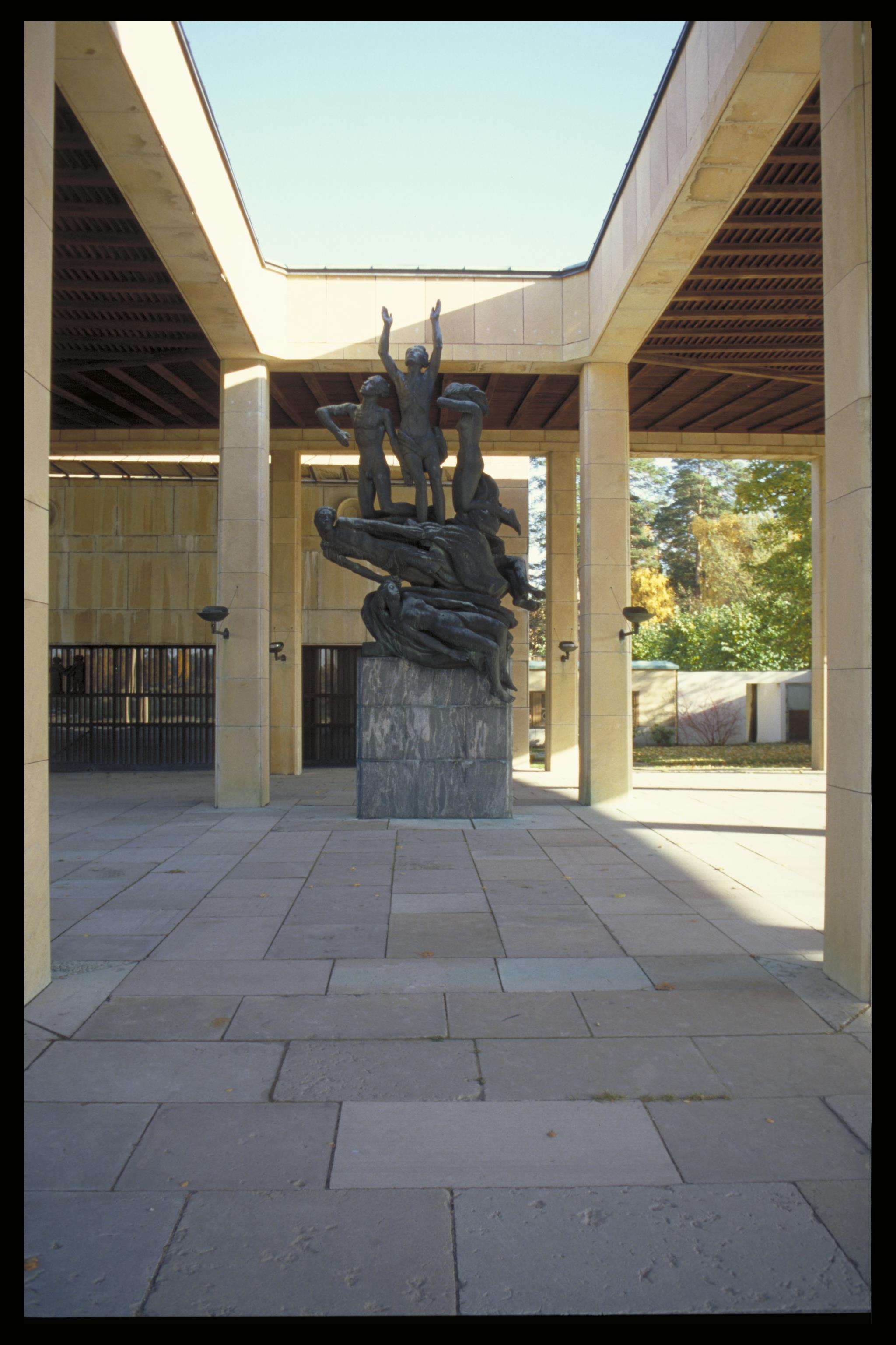 Heliga korsets kapell. Uppståndelsemonumentet av John Lundqvist i bildens mitt.