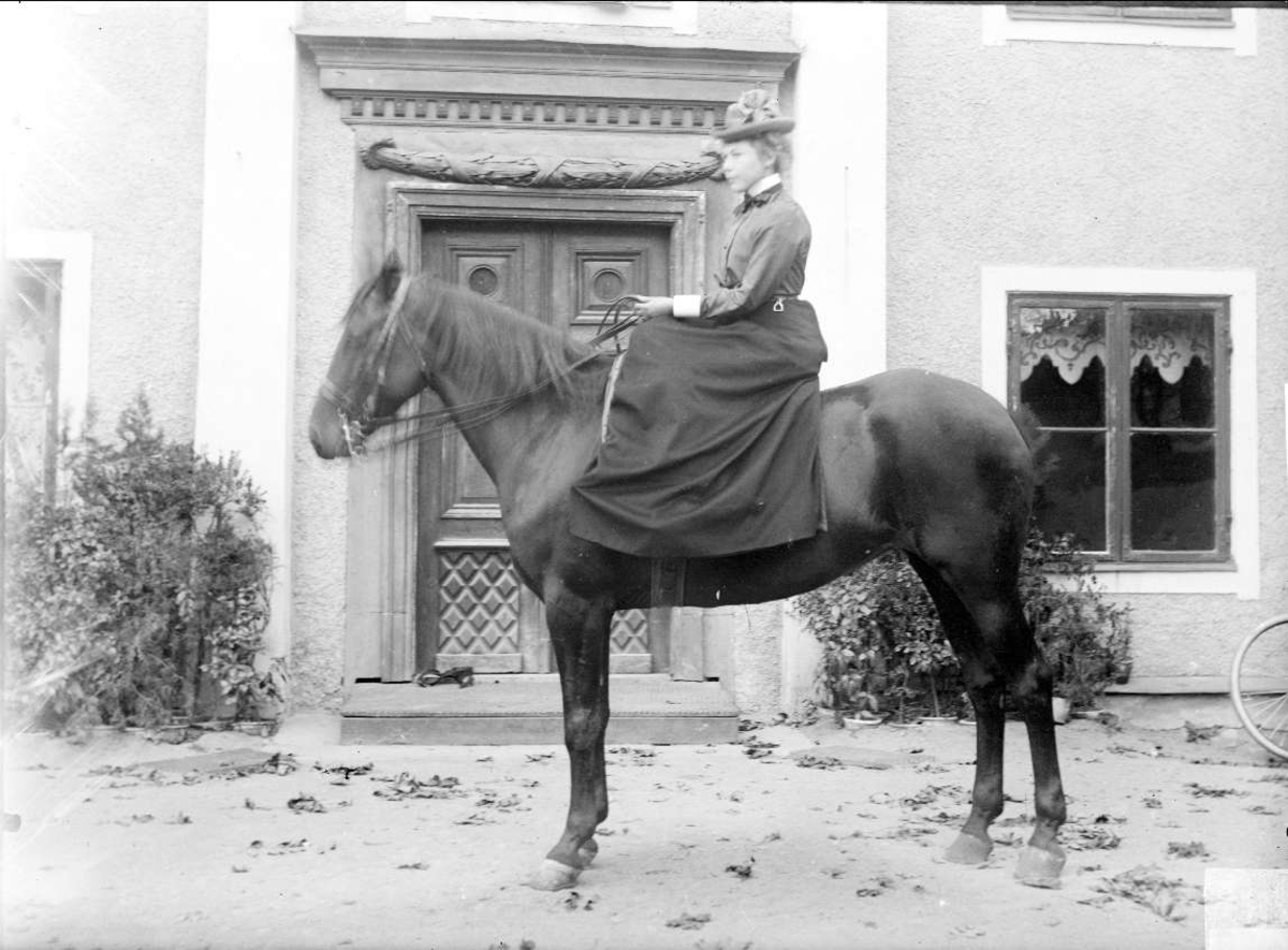 Titel: Kvinna på häst, Hallkveds herrgård, Funbo socken, Uppland