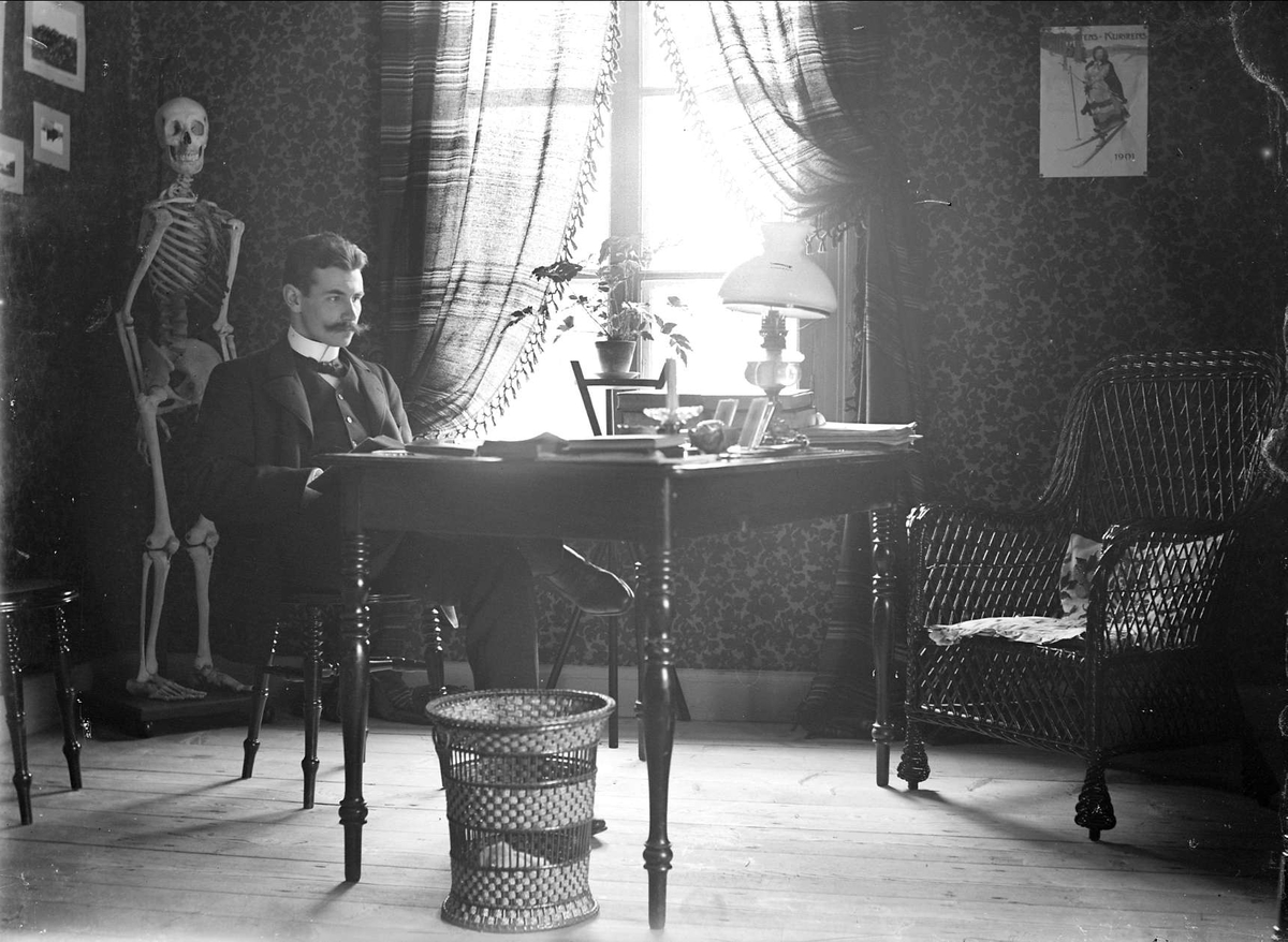 Ung man, sannolikt läkarstuderande, i hemmiljö, Uppsala