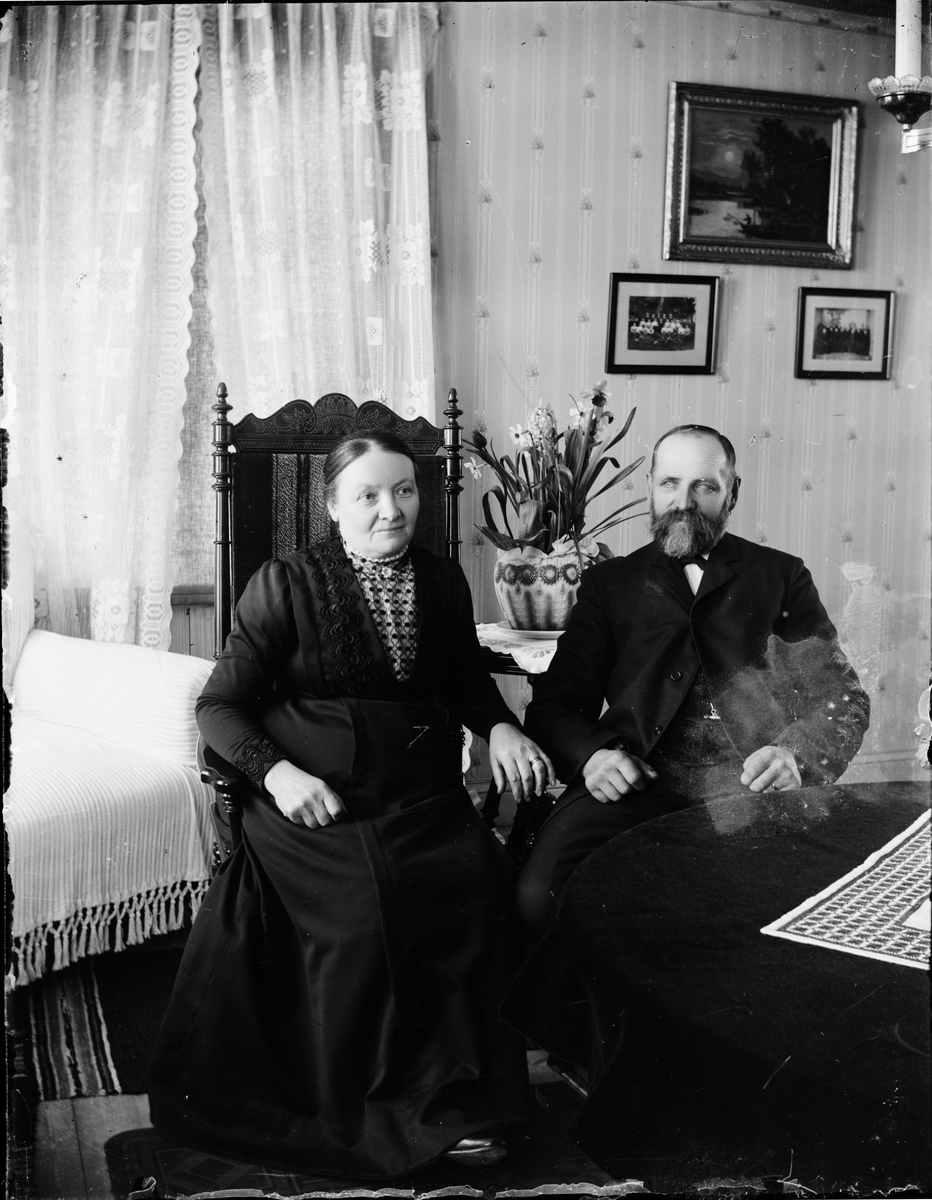 Titel: Man och kvinna i bostadsmiljö, Östhammar, Uppland