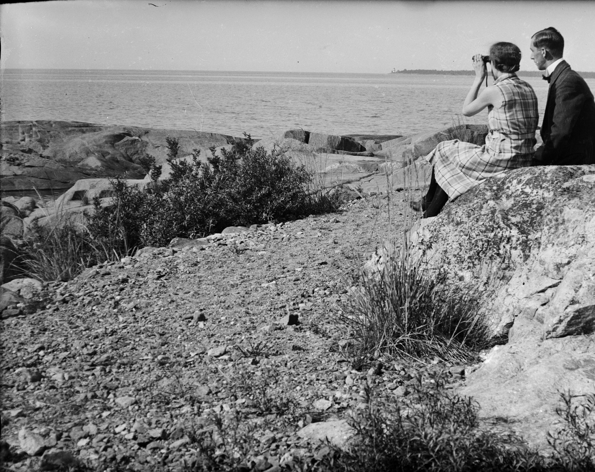 Man och kvinna tittar ut över havet , Östhammar, Uppland